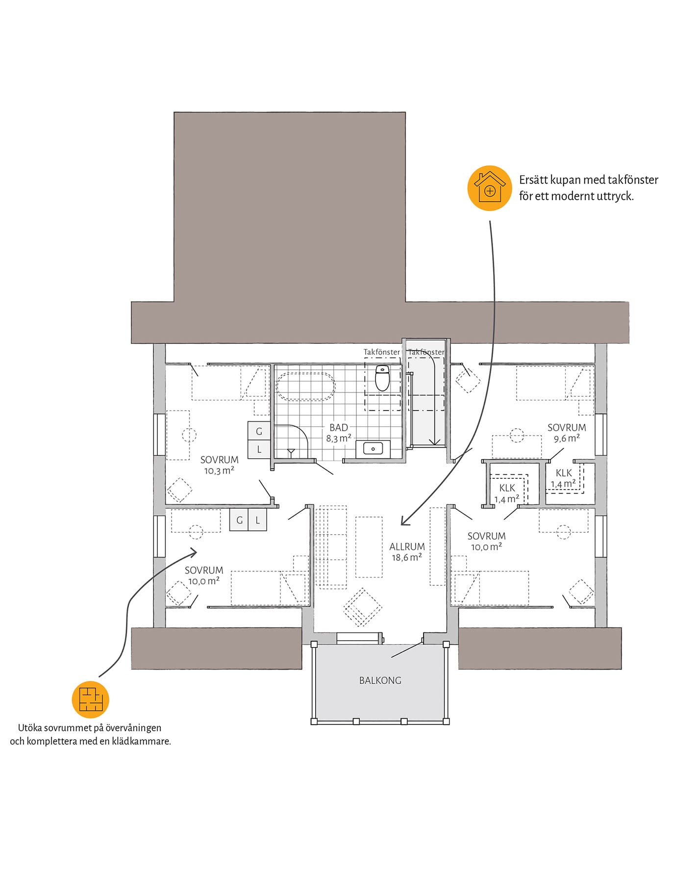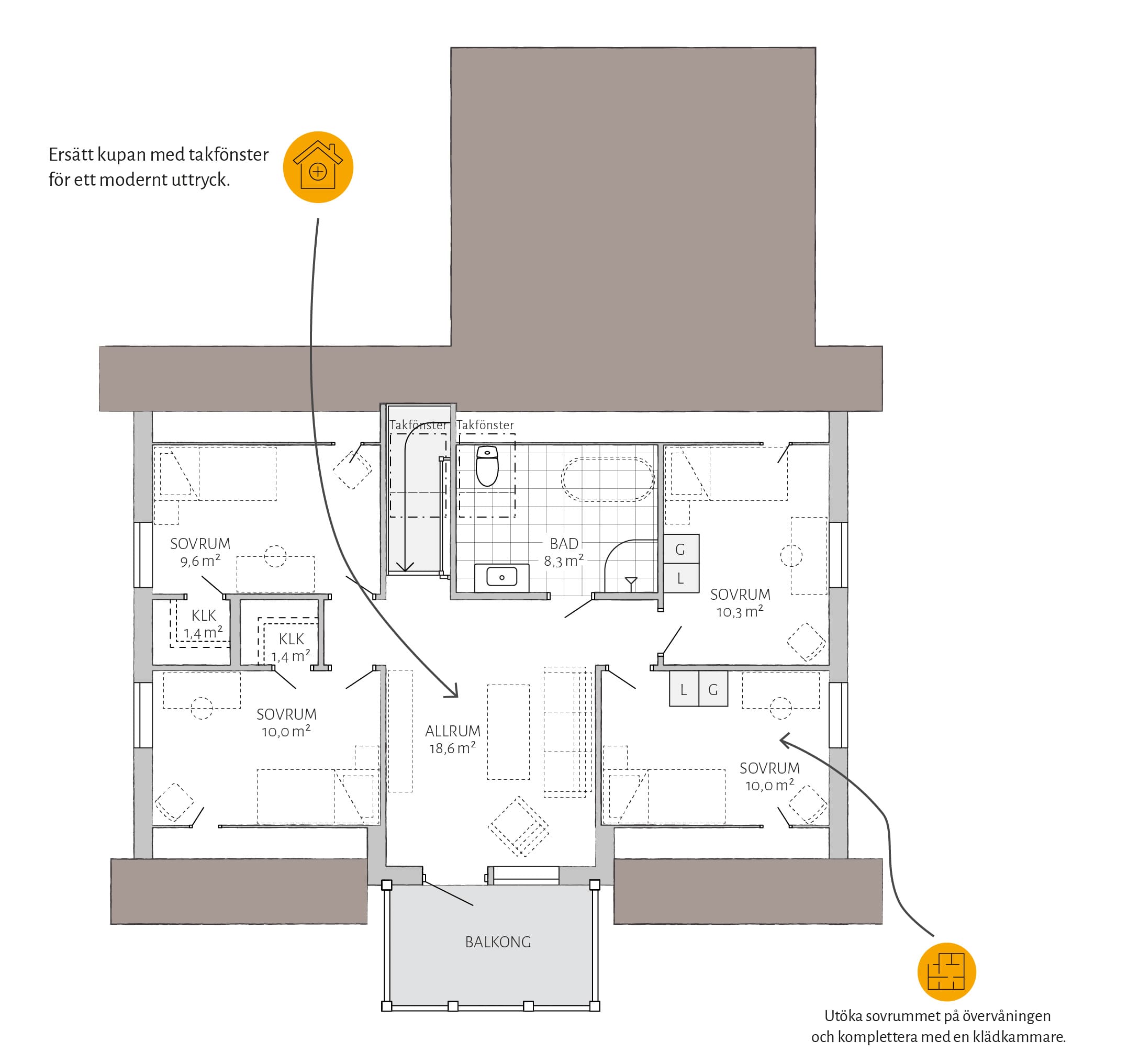 En bra planlösning och en husmodell som svarar upp mot de egna kraven är en bra början. Hos Eksjöhus finns mycket kvalitet som standard – och många roliga möjligheter till tillval. I våra Flexhus har du bland annat nedan möjligheter.