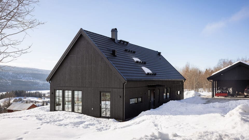 Med 28 mm tjocklek på foder, knutar och vindskivor är detta ett trähus som står pall. De flesta av våra kunder väljer fasad i trä men vi bygger gärna huset med fasad i puts eller tegel. Kvalitetspannor från Benders är standard för taket. Här finns många val i kvalitet och färg. Väljer du träfasad är huset grundmålat från fabrik som standard.