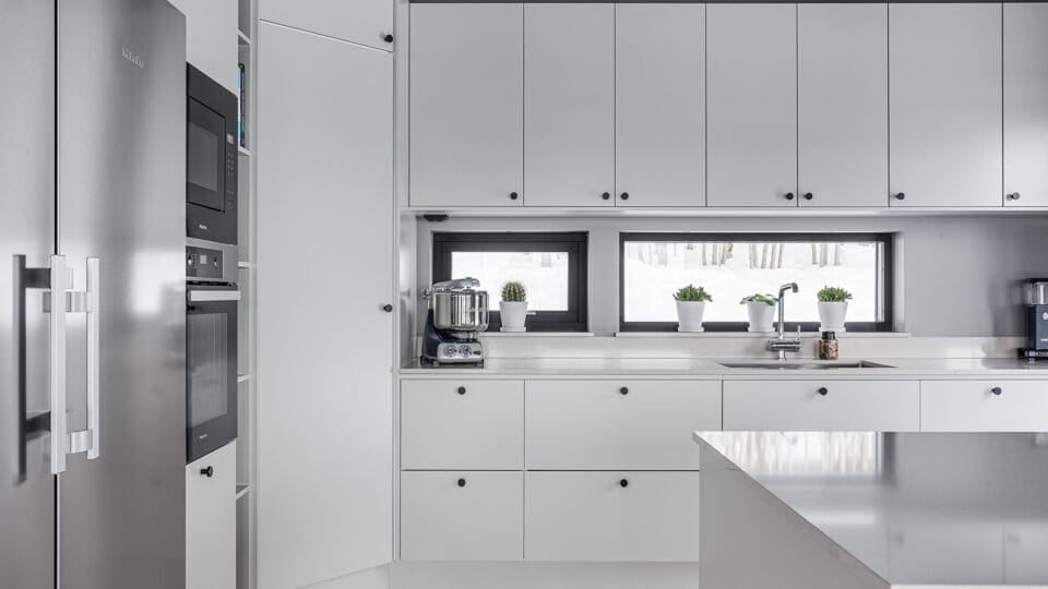 Vår standardutrustning är komplett och av högsta kvalitet. Huset har berg-, jord-, frånluft- eller sjövärmepump från Nibe. Badrums- och köksinredning från Vedum, samt vitvaror till kök och tvätt från Miele. Vi kompromissar inte med att bygga trähus, därför är massiv ektrappa från Snickarlaget, trägolv från Kährs och massiva innerdörrar från Swedoor standard. Vill du uppgradera ytterligare finns många attraktiva val.