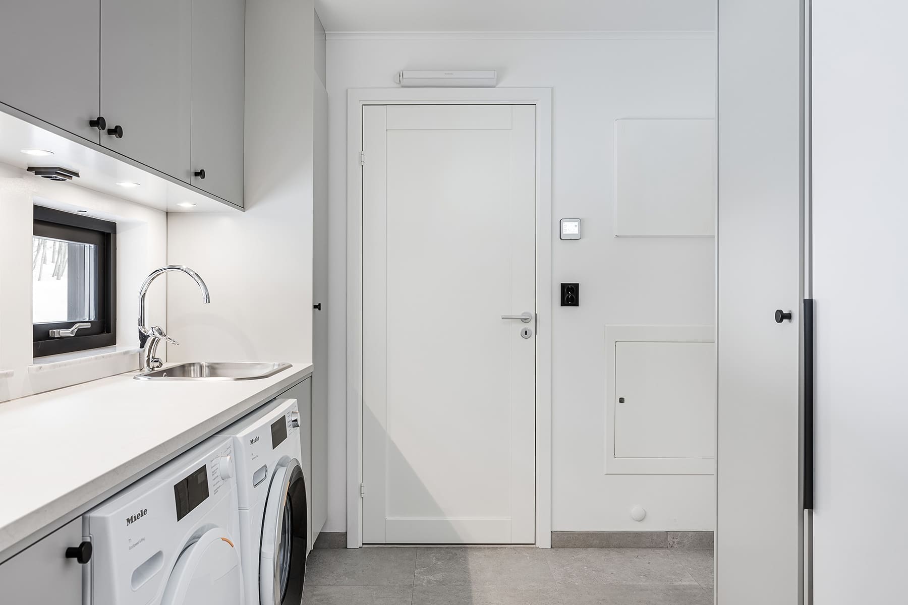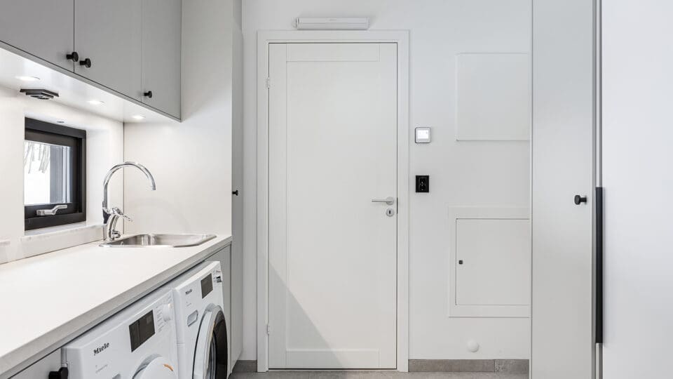 Med välplanerad planlösning, sociala ytor och mycket rymd är det perfekt för den lilla familjen. Det stora föräldrasovrummet kommer med rymligt dressingroom. Den välplanerade tvättstugan är i direkt anslutning till klädkammaren. Möjlighet att dela av till ytterligare sovrum finns.