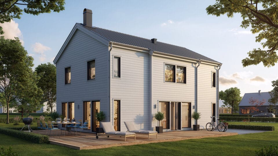 Med 28 mm tjocklek på foder, knutar och vindskivor är detta ett trähus som står pall. De flesta av våra kunder väljer fasad i trä men vi bygger gärna huset med fasad i puts eller tegel. Kvalitetspannor från Benders är standard för taket. Här finns många val i kvalitet och färg. Väljer du träfasad är huset grundmålat från fabrik som standard.