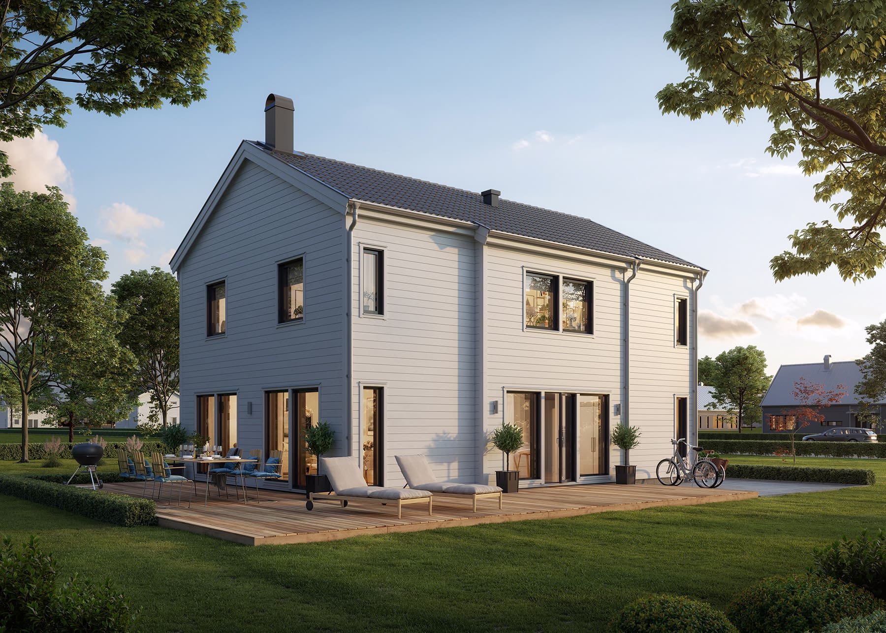 Njut av ljumma sommarmorgnar på den vidsträckta terrassen som gör Ljunghem till något alldeles extra. Detta är huset för stadsfamiljen som vill bo rymligt, och nära stan, men inte göra avkall på utrymme eller social samvaro. I Ljunghem ryms både släktträffar, tonårsbarn och fritidsintressen. Här finns sociala ytor, fyra sovrum och extra förvaring som standard. Med en terrass som både ger utsikt och avskildhet, som pricken över i.