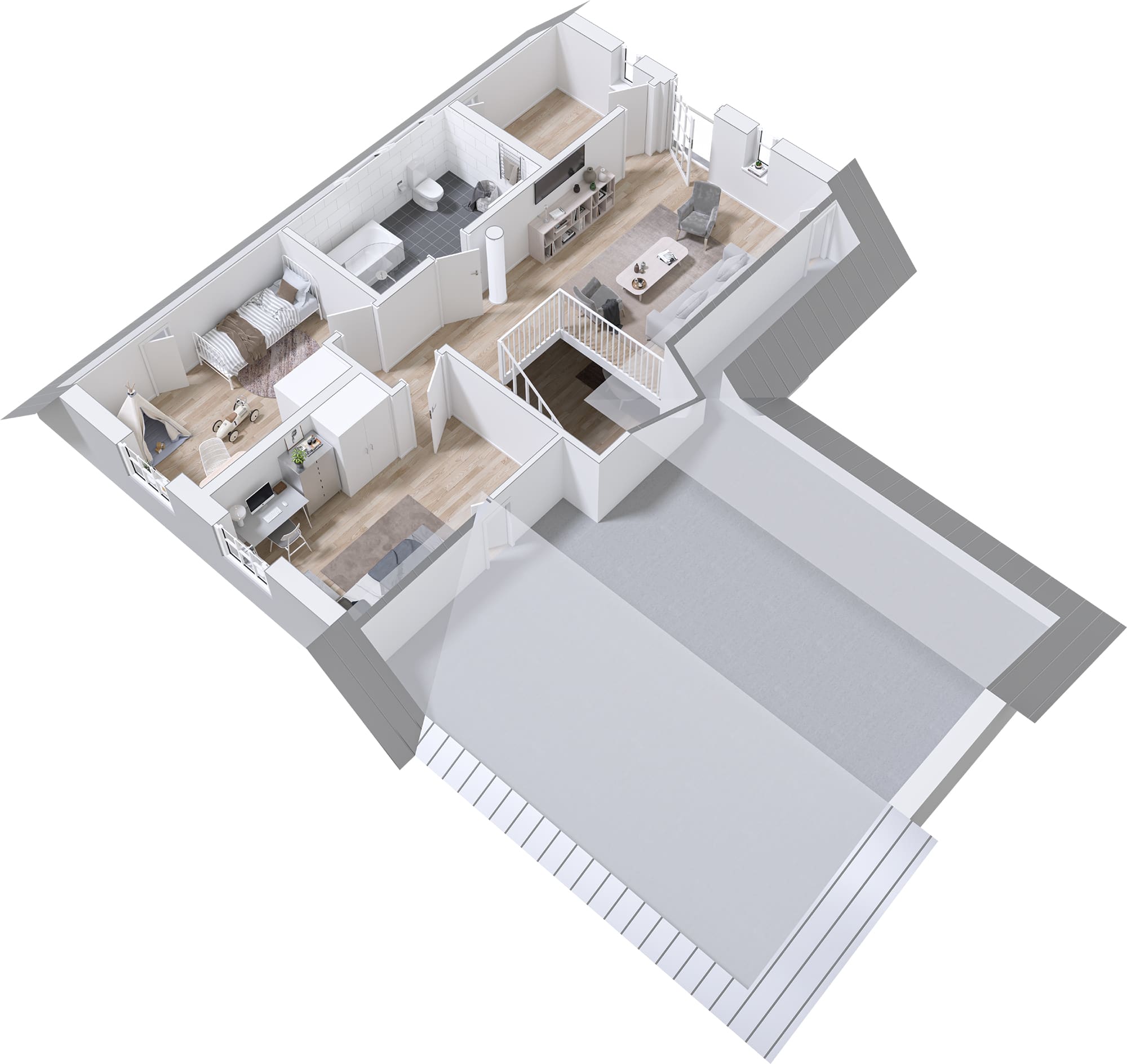 Det här är hus med stora möjligheter att förändra planlösning och lägga till extra fönster och dörrar. Ett Flex+ väljer du som vet precis vad du är ute efter och har många egna visioner kring ditt boende.