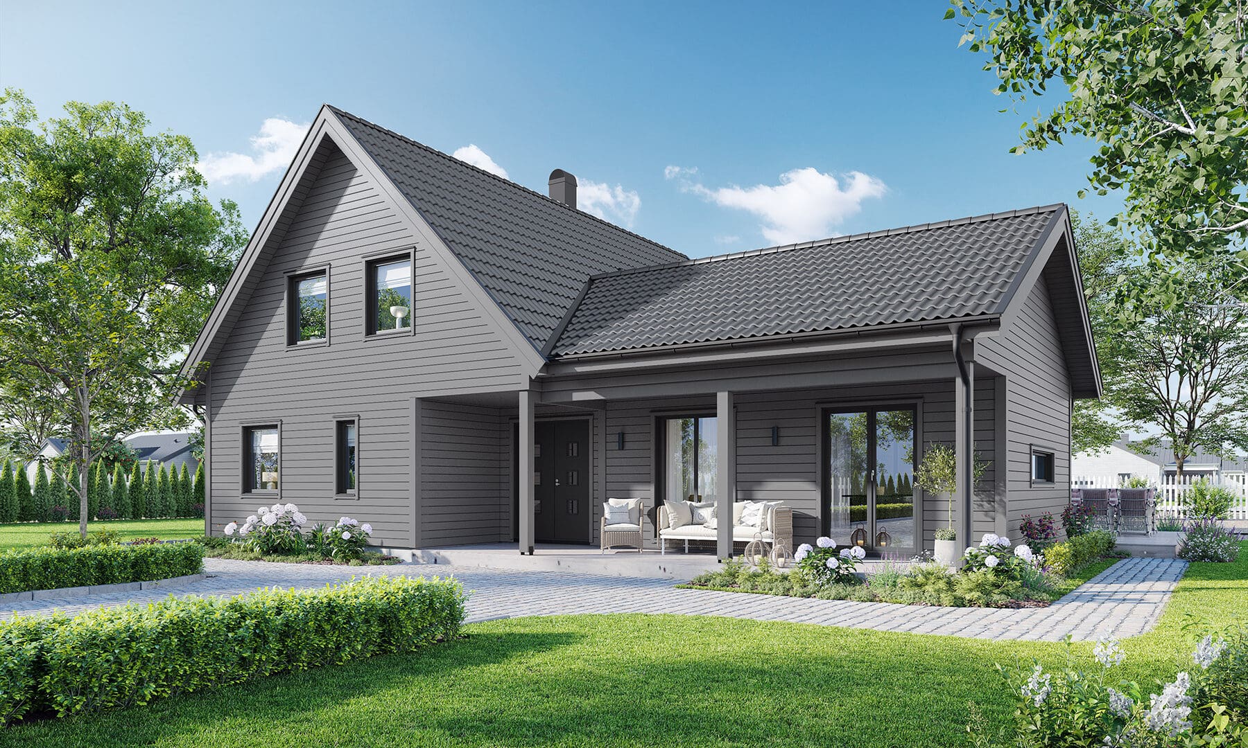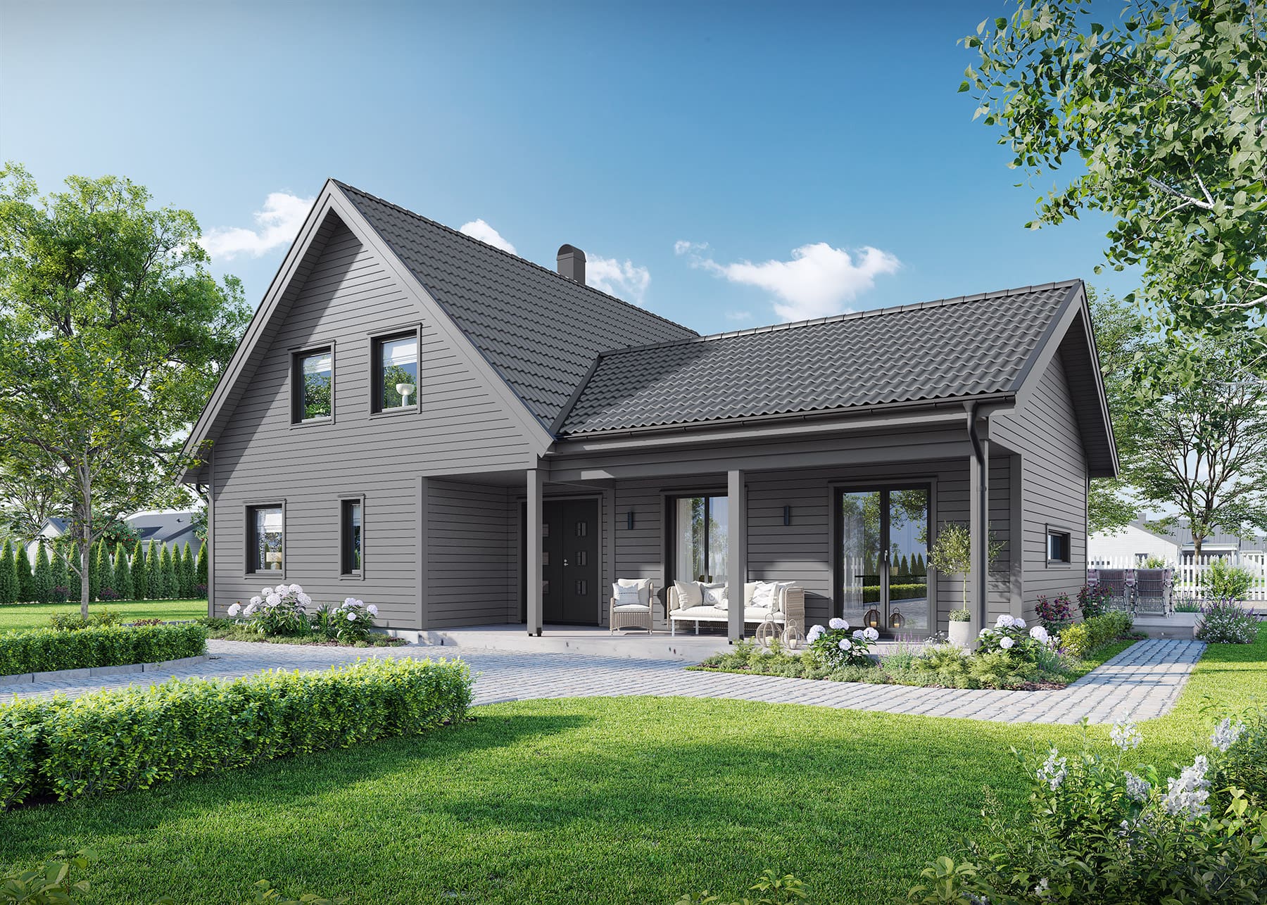 Modernt 1,5-planshus med charmig veranda