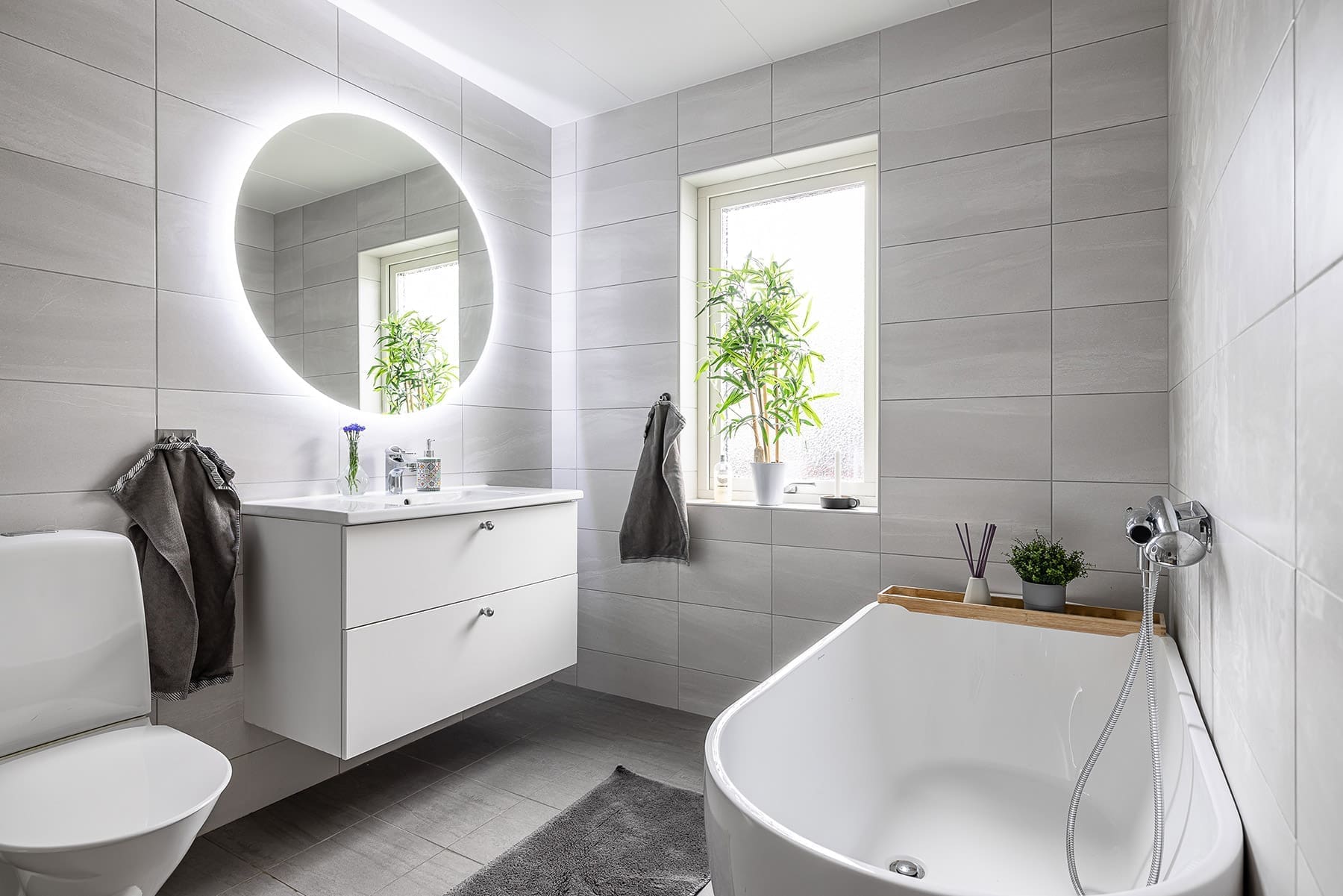 Vår standardutrustning är komplett och av högsta kvalitet. Huset har frånluftsvärmepump från Nibe. Badrums- och köksinredning från Vedum, samt vitvaror till kök och tvätt från Miele. Vi kompromissar inte med att bygga trähus, därför är massiv ektrappa från Snickarlaget, trägolv från Kährs och massiva innerdörrar från Swedoor standard. Vill du uppgradera ytterligare finns många attraktiva val.