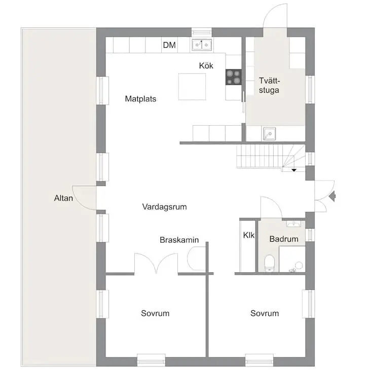 – Inget var slitet men vi ville sätta vår prägel på huset. Det behövde målas utvändigt och vitt var självklart för oss. Inne återanvände vi en parkett till vinden och lade in träklinker och plankgolv istället, säger Linda.