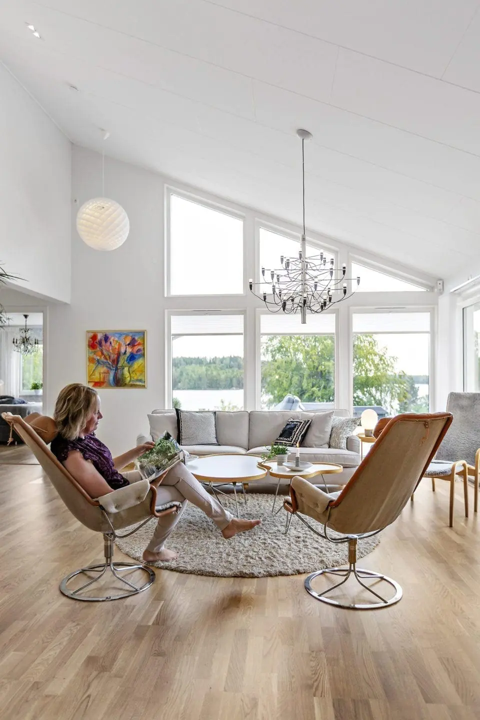 – Det blev väldigt fint. Vi adderade sedan de extra glasdörrarna och har varit angelägna om att göra val som står sig över tid. Kulörerna i huset höll på att bli mer lekfulla och vågade, men de insåg att det var bättre att ha vitt som grund inledningsvis för att succesivt kanske addera på när de ser hur skuggorna faller och hur allt ser ut i dagsljus.