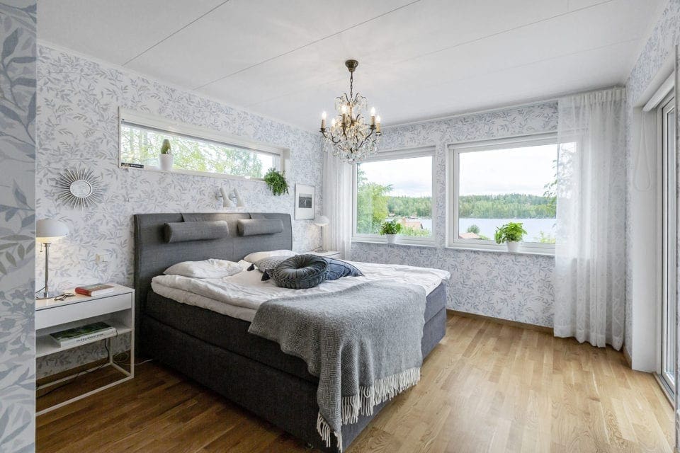 – Vi hade stunder när vi satt och ritade upp huset i sketch-appar för att få fram den visuella 3D-känslan för att kunna se hur ett rum skulle kännas, hur olika storlekar på fönster skulle påverka utformningen. För att hitta rätt husmodell som skulle ta tillvara dygnets alla soltimmar behövde de leta utanför standardhussortimentet. Majoriteten av modellerna har vardagsrummet på motsatt sida av fasaden från entrén sett, medan de sökte vardagsrum och entré som låg placerade på samma sida för att sjöutsikten skulle tas tillvara på bästa sätt.