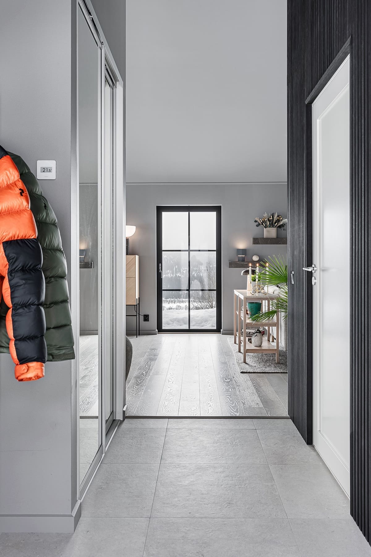 Förvaringen gjorde stor skillnad för Tobias och Magnus. Men det som verkligen får besökarna att höja på ögonbrynen är den stil som går som en röd – eller snarare grå – tråd genom huset. Ett uttryck signerat Tobias, som tillsammans med Magnus ville hitta en ny känsla i deras första gemensamma hem.