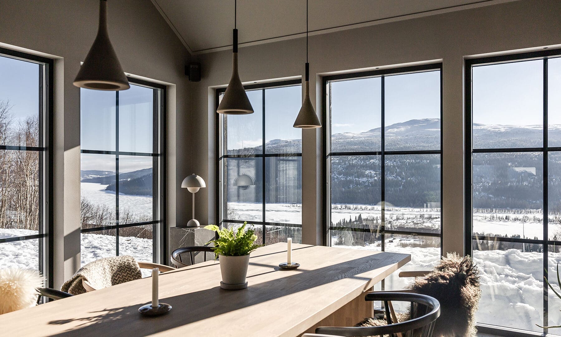 Ett krav från Tobias och Magnus var utsikt från matsal, kök och sovrum. Helst också vardagsrum och badrum. Något som är fullt förståeligt när man blickar ut över Åresjön och Åreskutan från den högt belägna tomten.