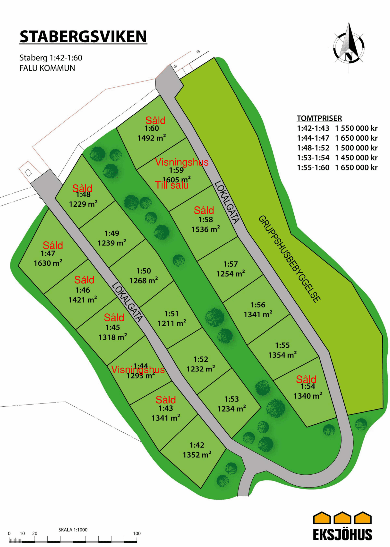 | Nummer | Tomtarea | Tomtpris | Status |