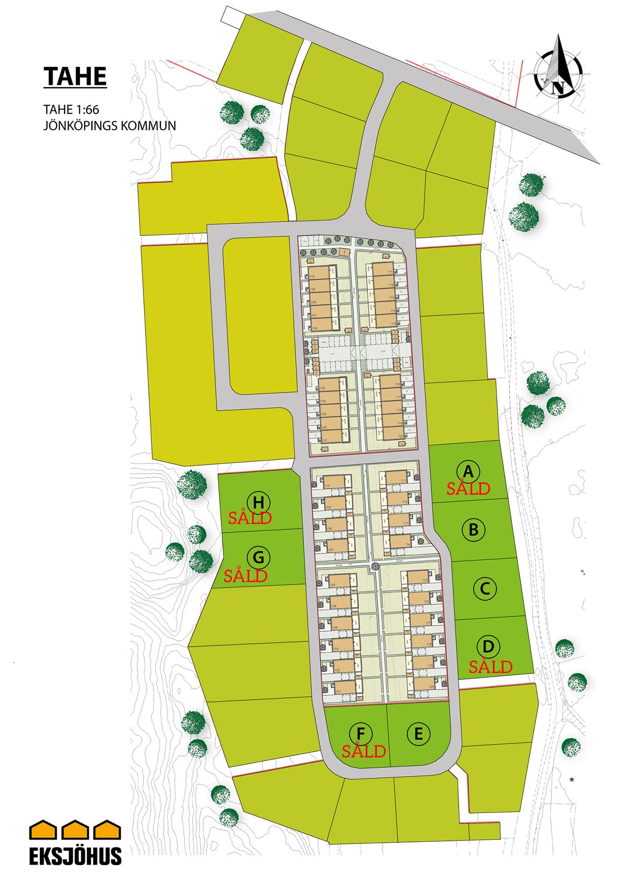 I Tahe släpper vi nu 8 villatomter för byggnation av valfritt Eksjöhus. Med bara 5 minuter till E4:an och 15 minuter till Jönköping finns både goda pendlingsmöjligheter och närheten till stadens puls.